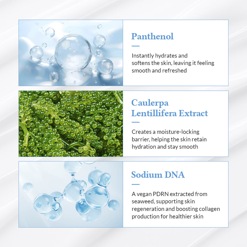 Water, Bambusa Vulgaris Water, Isononyl Isononanoate, Propanediol, Butyloctyl Salicylate, Ethylhexyl Triazone, Polymethylsilsesquioxane, Dibutyl Adipate, Diethylamino Hydroxybenzoyl Hexyl Benzoate, Niacinamide, Drometrizole Trisiloxane, Methylene Bis-Benzotriazolyl Tetramethylbutylphenol, 1,2-Hexanediol, Pentylene Glycol, Polyglyceryl-3 Methylglucose Distearate, Glycereth-26, Panthenol, Behenyl Alcohol, Tromethamine, Decyl Glucoside, Caprylyl Methicone, Hydrogenated Castor Oil/Sebacic Acid Copolymer, Carbomer, Acrylates/C10-30 Alkyl Acrylate Crosspolymer, Polyglyceryl-6 Distearate, Polyacrylate Crosspolymer-6, Trimethylsiloxysilicate, Ethylhexylglycerin, Candelilla/Jojoba/Rice Bran Polyglyceryl-3 Esters, Sodium Stearoyl Glutamate, Adenosine, Glycerin, Sodium Hyaluronate, Xanthan Gum, Ceramide NP, Tocopherol, Butylene Glycol, Caulerpa Lentillifera Extract, Sodium DNA