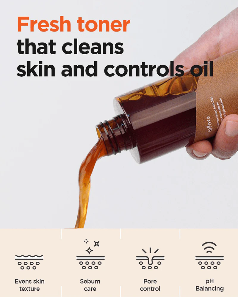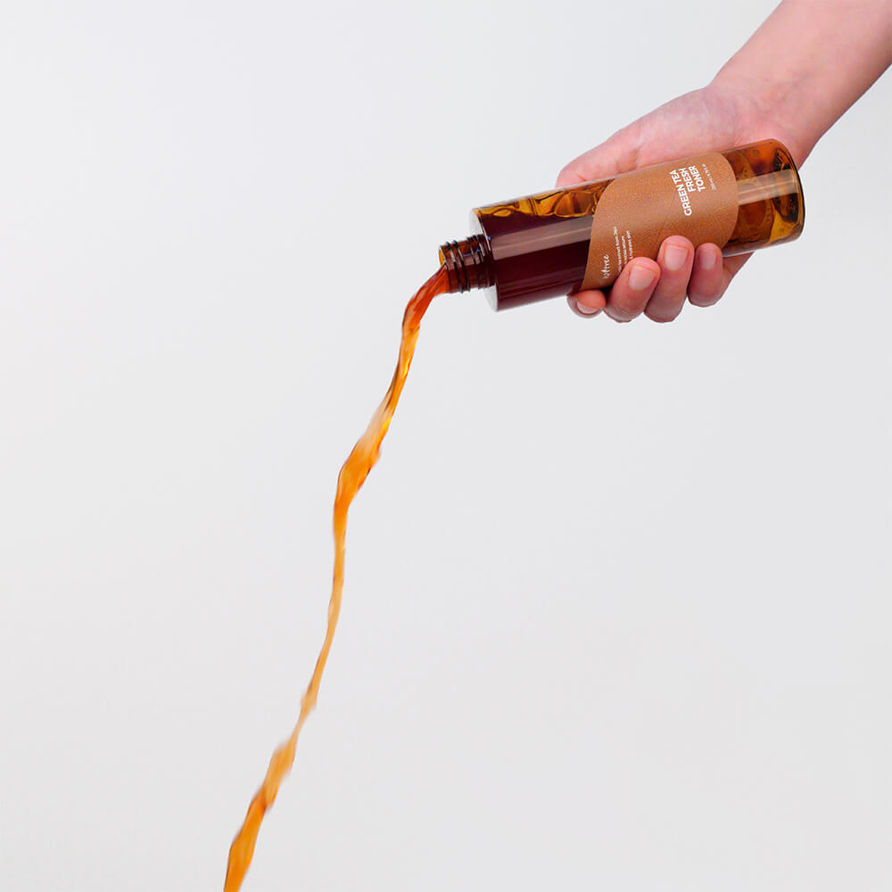 80% of the toner is made up of Jeju Island green tea extract, which is enriched with a large amount of amino acids, minerals, polyphenols, proteins and other beneficial components obtained from young leaves. It relieves stress, irritation and itching, eliminates dullness, fills the skin with energy and restores radiance. It has an effective therapeutic and bactericidal effect.
