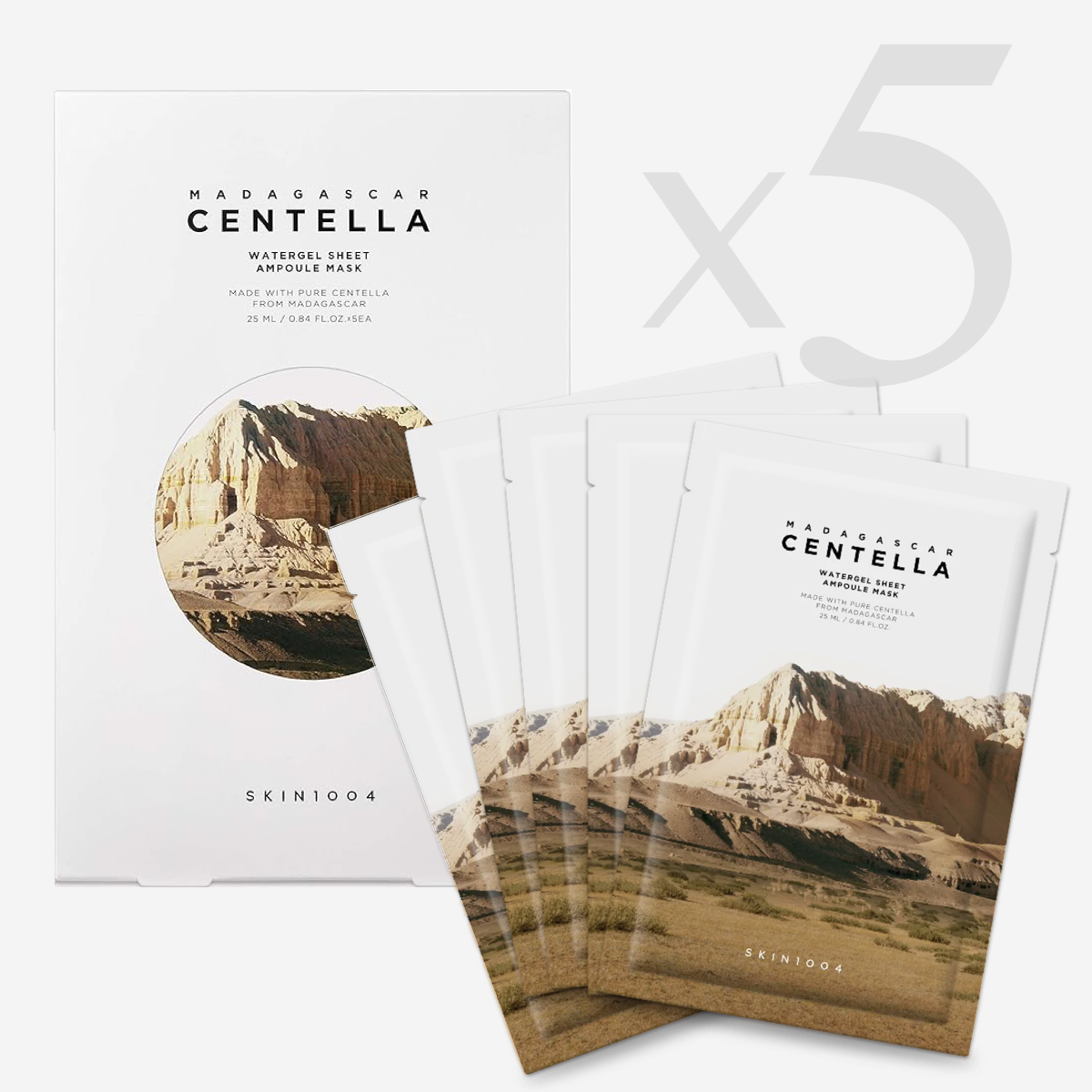 Ovaj set sadrži 5 maski SKIN1004 Madagascar Centella Watergel Sheet Ampule Mask. Originalno pakovanje u kojem dolazi od proizvođača.