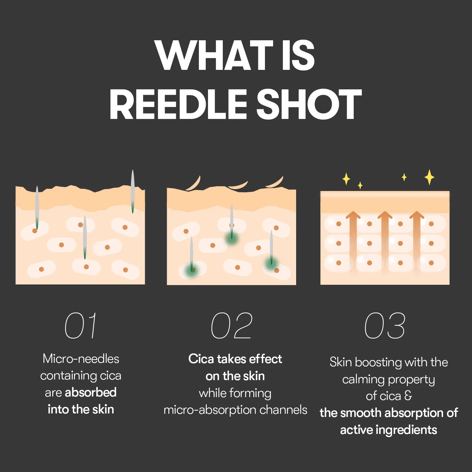 CicaReedle microneedle technology (237,000 ppm) delivers active ingredients into the deep layers of the epidermis and stimulates cell renewal processes. Microneedles are 14 times smaller than pores, their shell contains 14 types of minerals necessary to suppress inflammatory processes and accelerate healing by improving oxygen exchange.
