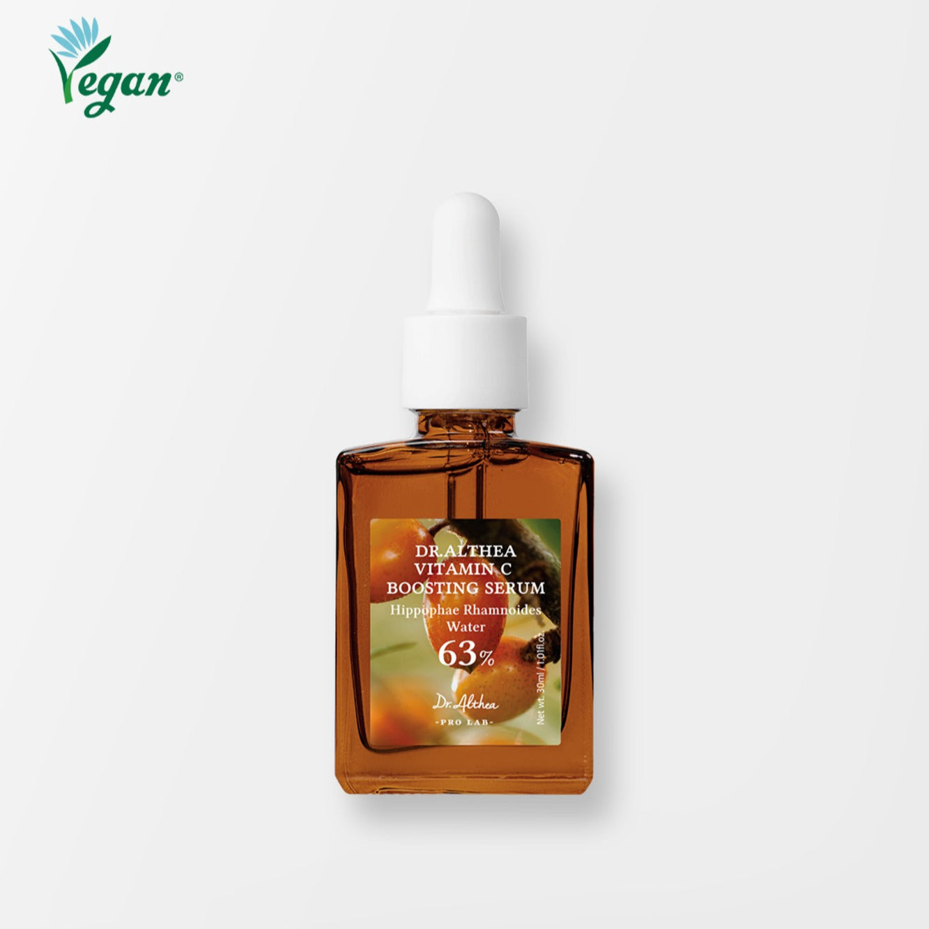 Бустер-сыворотка Dr. Althea Vitamin C Boosting Serum 63% — это усиленная формула с высокой концентрацией активных компонентов, направленная на выравнивание тона, осветление пигментации и общее улучшение качества кожи.